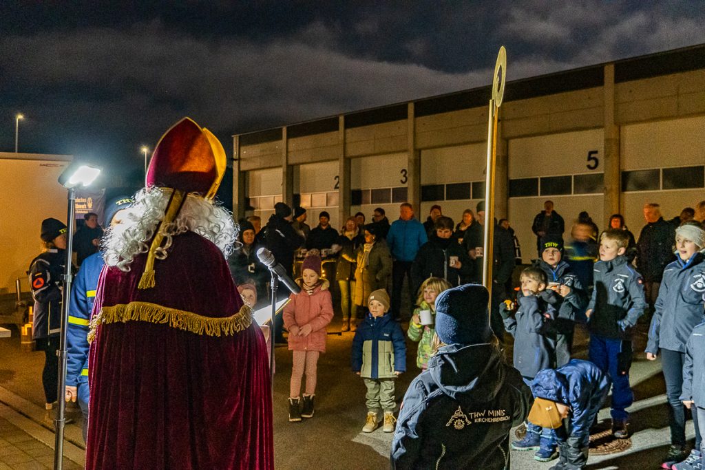 Natürlich durfte bei dieser Gelegenheit auch der Nikolaus nicht fehlen. Er besuchte die Veranstaltung und hatte für jedes Kind der THW-Minis ein Weihnachtsgeschenk im Gepäck. Die Minis hatten zur Begrüßung ein Weihnachtsgedicht vorbereitet, das sie dem Nikolaus vortrugen. Dieser wiederum erzählte den Kindern eine THW-Weihnachtsgeschichte, bevor er die Geschenke überreichte. Für die übrigen anwesenden Kinder hatte er zusätzlich einen Schoko-Nikolaus dabei.