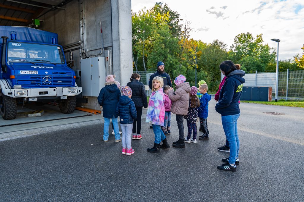 Während ihres Besuchs konnten die jungen Feuerwehrleute die Einsatzfahrzeuge des THW aus nächster Nähe bestaunen und erfuhren, warum das THW so viele verschiedene Anhänger besitzt. Auch ein Blick in die Fahrzeughalle und in das Verwaltungsgebäude durfte nicht fehlen – dort gab es allerlei interessante Geräte, Werkzeuge und Ausrüstungsgegenstände zu entdecken.